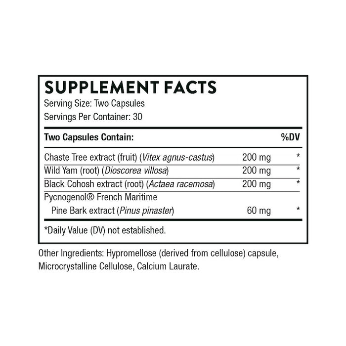 Thorne’s Meta-Balance provides an all-natural approach for women’s hormonal harmony without the side effects associated with conventional hormone replacement therapy.* The botanical formula includes unique, well-studied ingredients – chaste tree and black cohosh extracts, wild yam, and Pycnogenol from French maritime pine bark – a synergistic blend ideal for women experiencing cyclical, perimenopausal, or menopausal symptoms by helping balance both estrogen and progesterone levels.