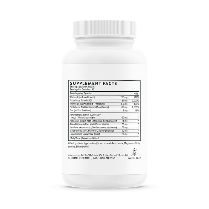 The constant low-level daily stress most of us experience can overstimulate and overtax the adrenal glands, thus adversely affecting our immune, cardiovascular, neurological, and endocrine systems. Thorne’s Stress Balance helps to modulate the effects of a modern lifestyle.* Its unique combination of key adaptogen botanicals, B vitamins, vitamin C, and zinc helps the adrenal glands optimize their response to stress.