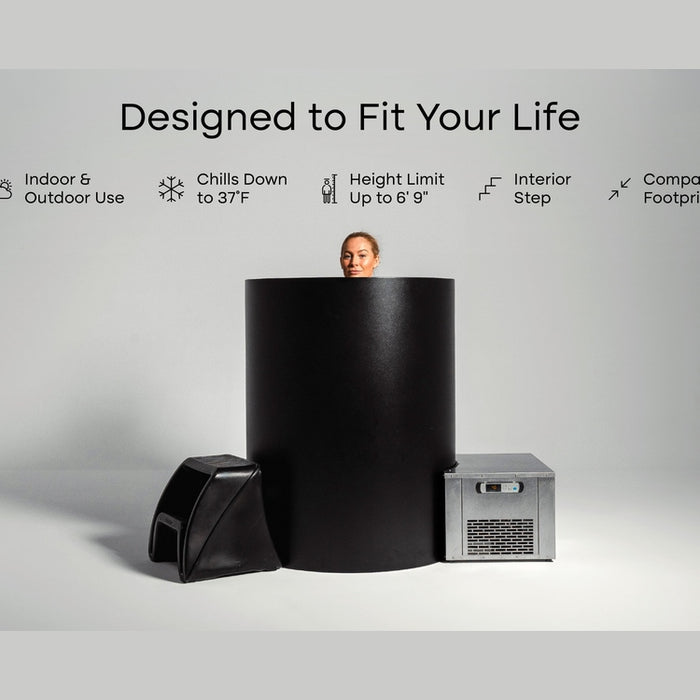 Premium Vertical Cold Life Plunge, Pro Curve Plunge Chiller, Cold Life Step Stool, Carbon Hose Filter, Skimmie Net