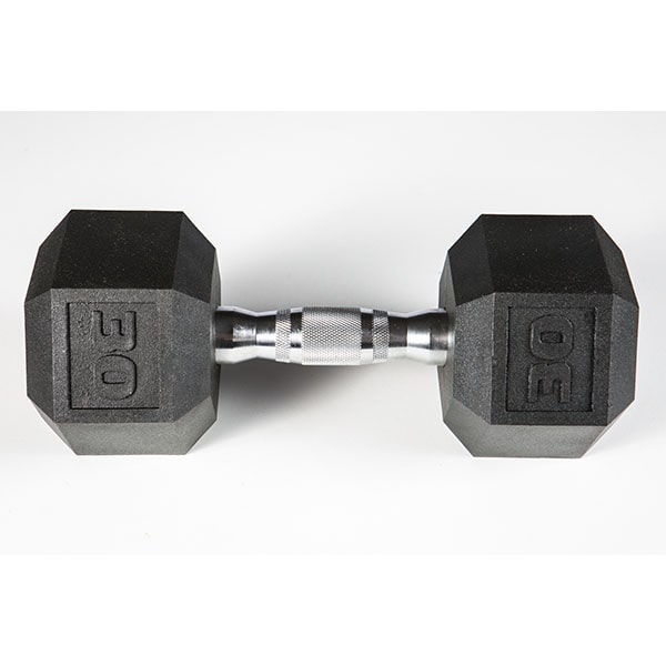 Ideal for any gym but perfect for small spaces due to the lack of a rubber odor, the York Barbell Premium PVC coated dumbbells were developed with York’s enduring standard of performance and function. These dumbbells feature a heavily contoured ergonomic chrome handle with aggressive knurling for a tight grip. The premium PVC coating increases durability, protects flooring and equipment, diminishes noise and is easy to clean. The attractive chrome handle and jet-black dumbbell heads compliment most work out spaces and the hexagonal shape prevents unwanted rolling.